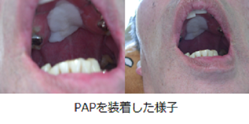 PAPを用いる事で口蓋部の厚みが増し、舌と口蓋の接触が容易となり、口腔内の食物残留が抑えられ誤嚥頻度の減少も認められました。